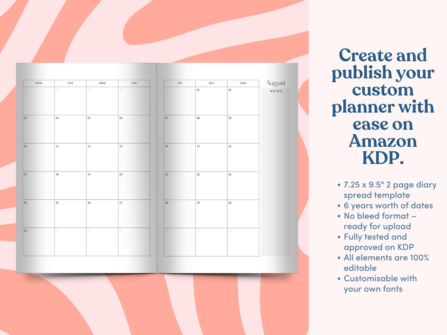 Whether you’re looking to publish dated planners or beautiful long-term diaries, this handy template saves you time and allows you to publish and start selling quickly.