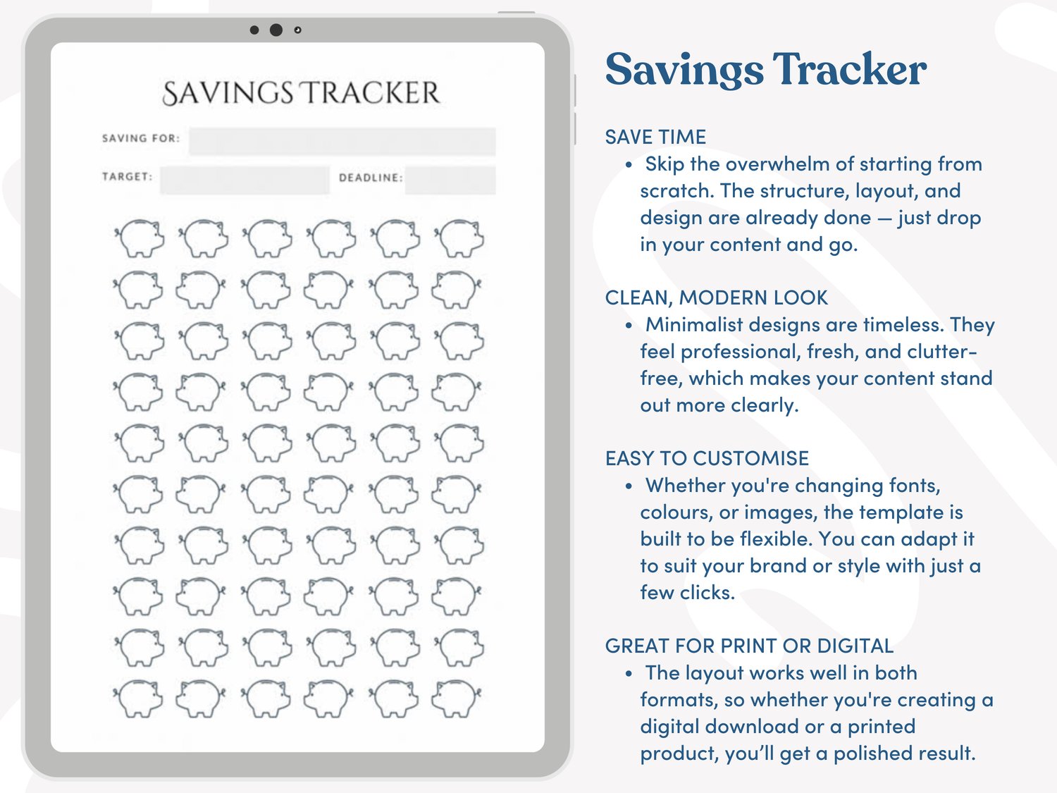 Tailored for commercial use, this helpful savings tracker template pack is designed to be customized by you, ready to sell to your customers through Amazon KDP.