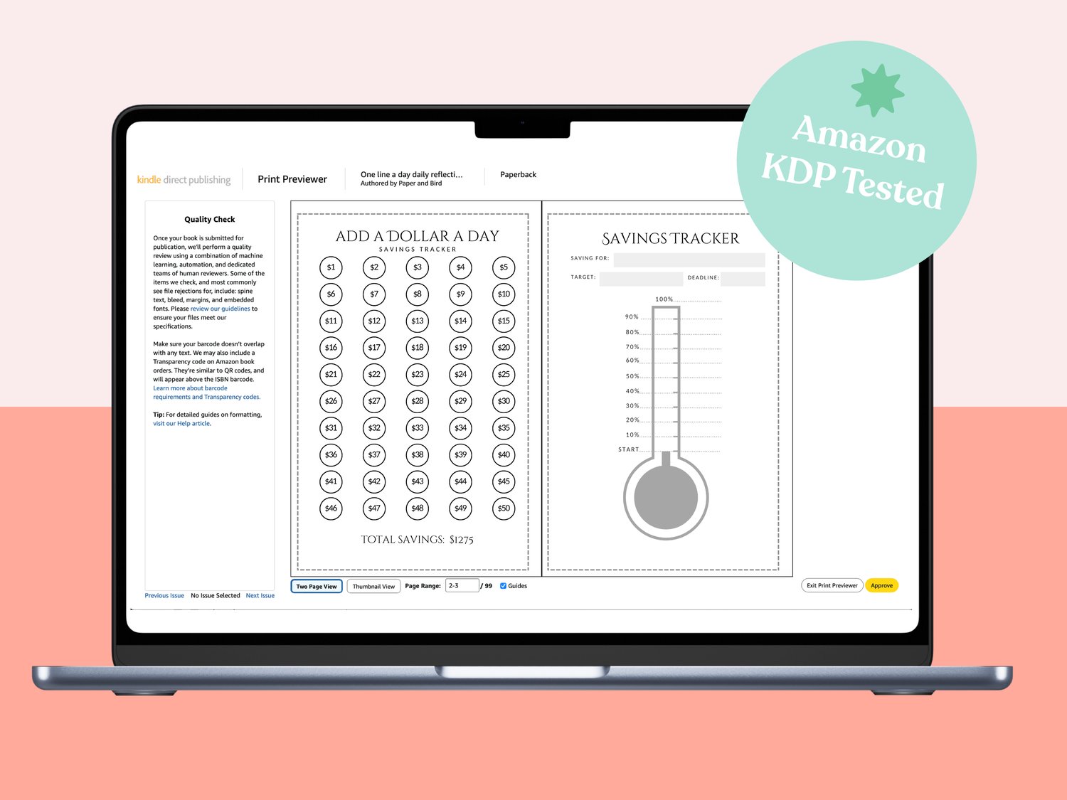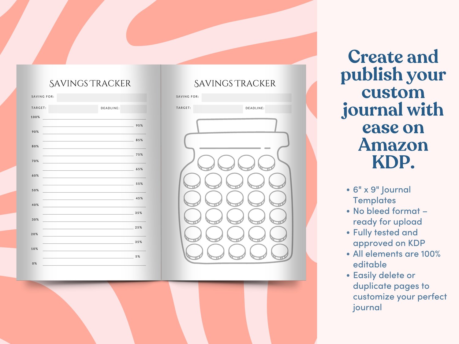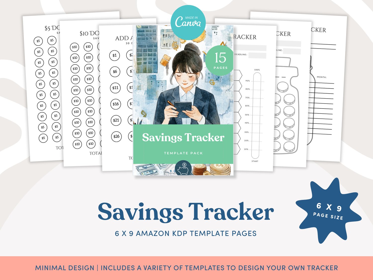 Savings Tracker KDP Template Pack | Canva Editable | 6x9 with Bleed | 15 Page Savings Tracker for Low Content Books | Immediate Access to Download After Purchase | KDP tested
