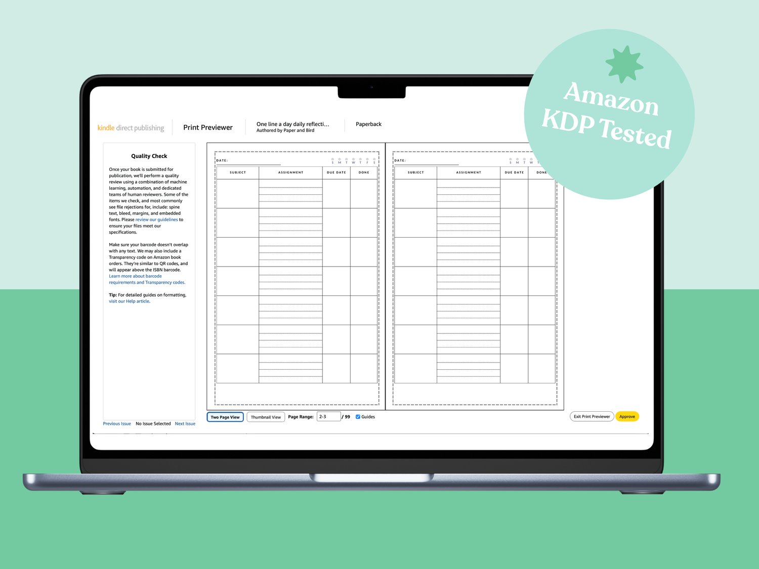With 100 pages of structured planning space, this editable template makes it easy for low-content book creators to design and sell a professional homework planner or academic diary in no time.