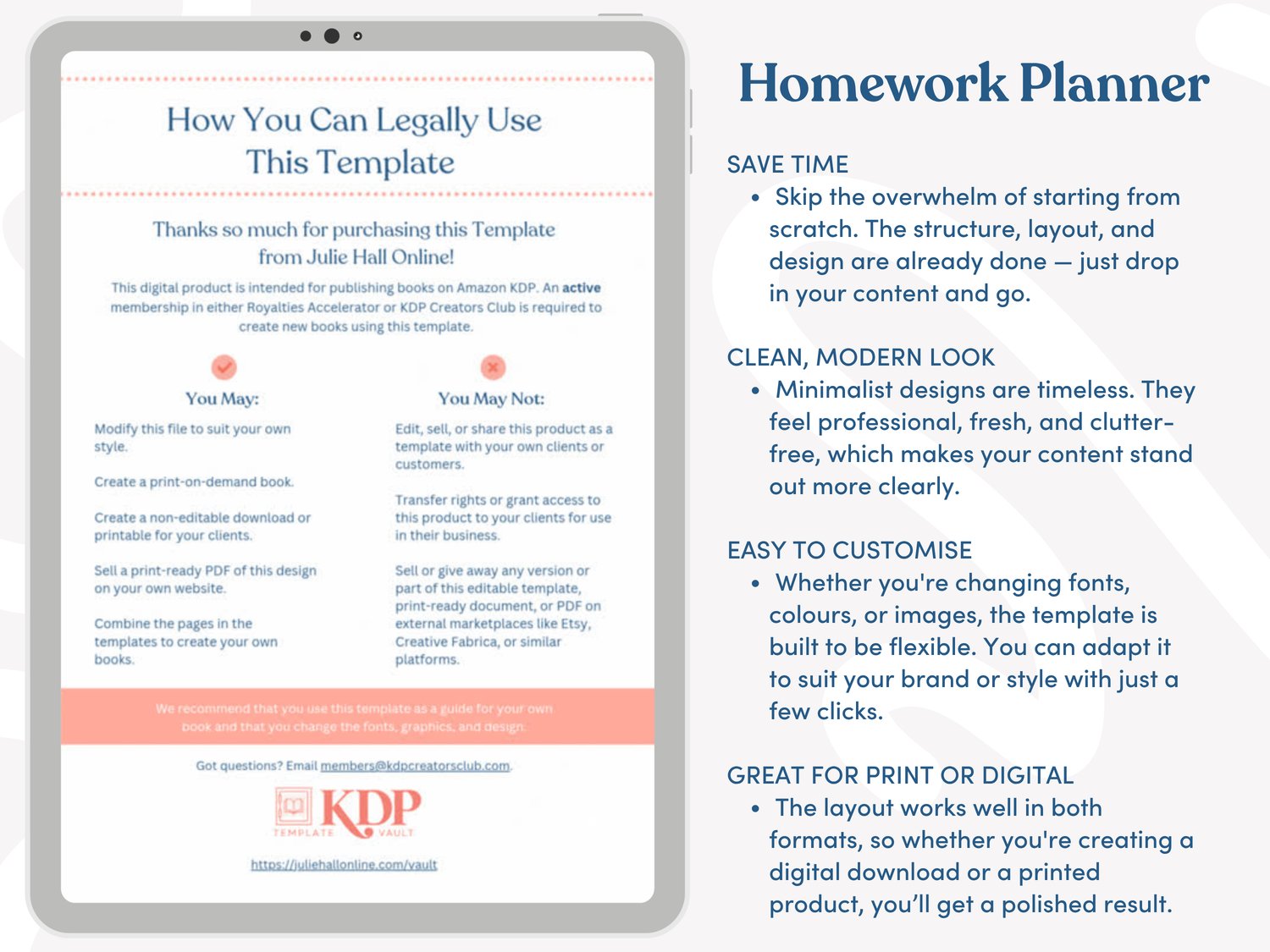 Tailored for commercial use, this clean and practical homework planner template pack is ready for you to customise and publish on Amazon KDP.