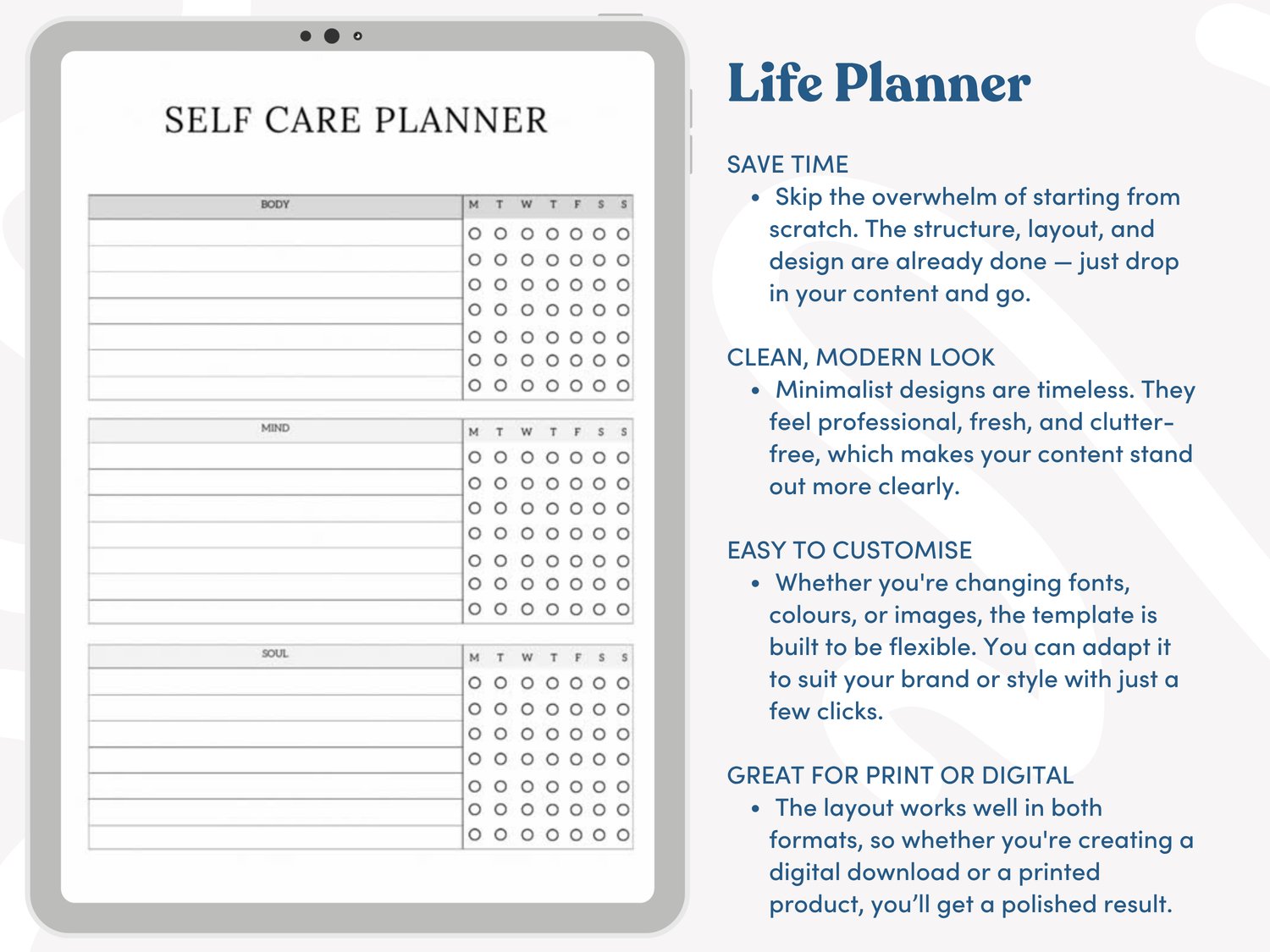 This 60-page life planner template is filled with mix-and-match pages designed to help you build a completely custom planner to suit every kind of lifestyle.