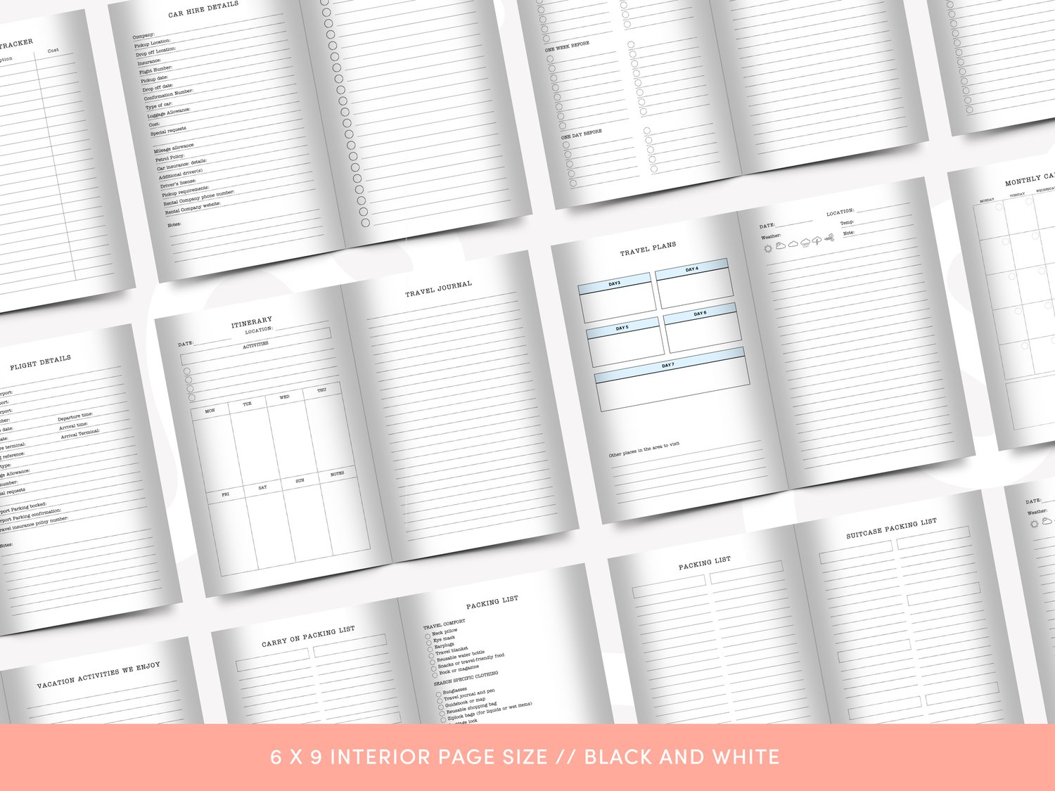 A travel planner page template pack made for creating low-content books on Amazon KDP.